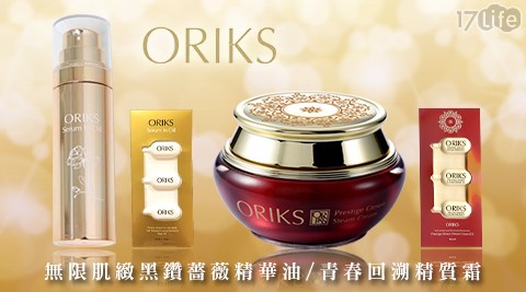 最近在購物網上看到限定折扣價ORIKS-無限肌緻黑鑽薔薇精華油/青春回溯精質霜" ,
